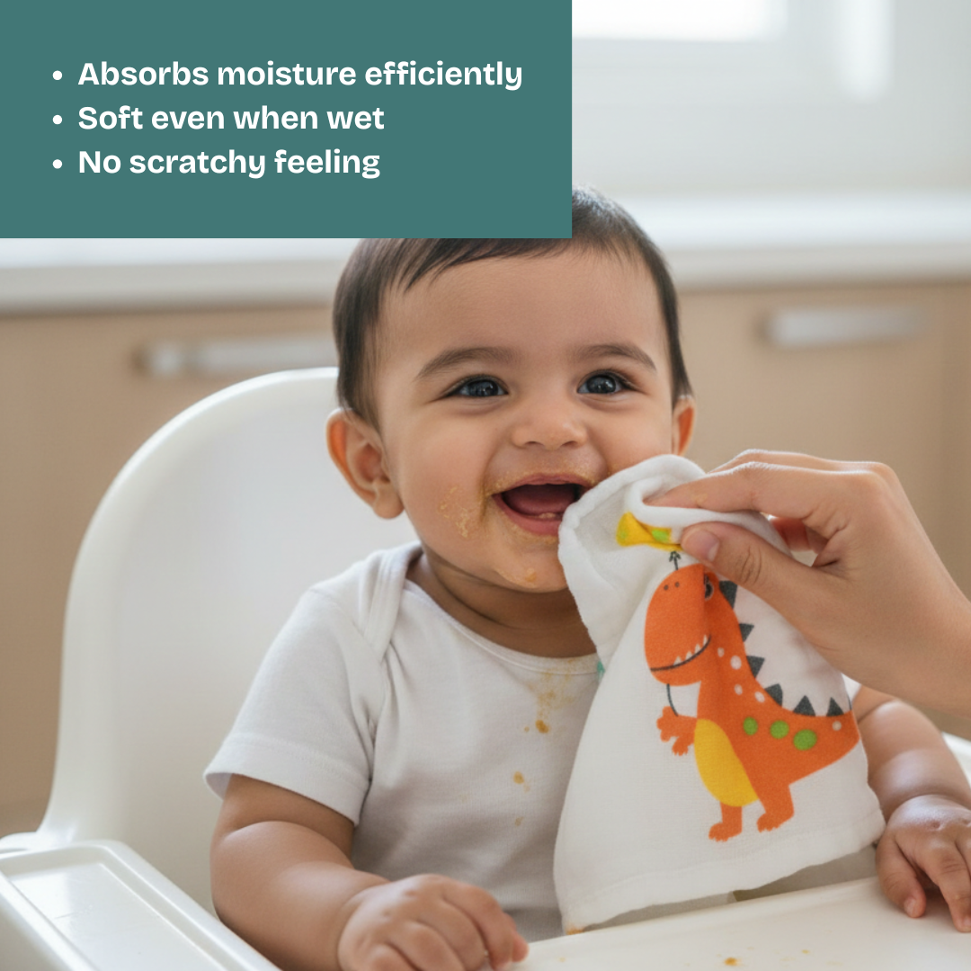 The 6-layer muslin design provides better absorption while remaining soft even after multiple washes. Strong stitching ensures long-lasting everyday use.