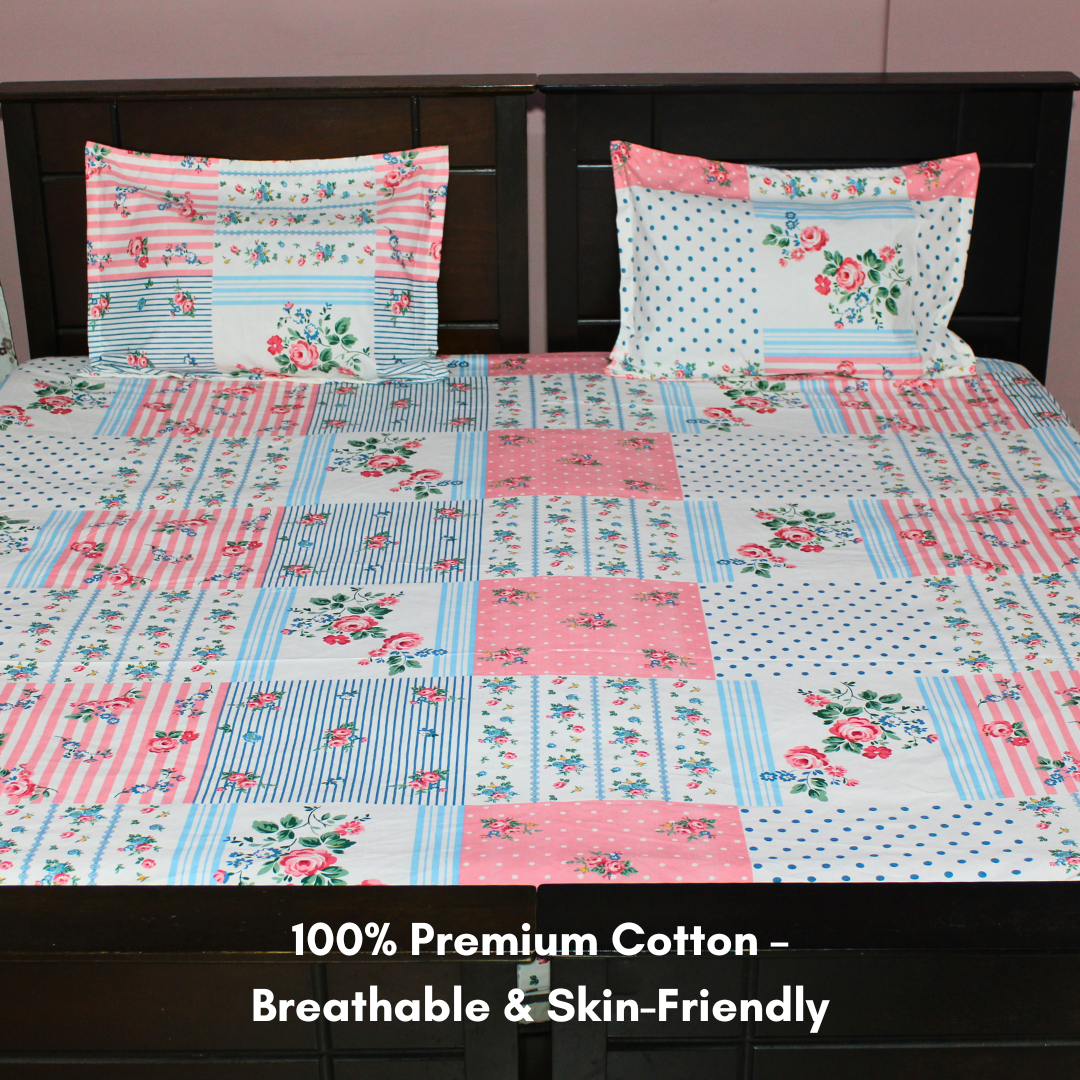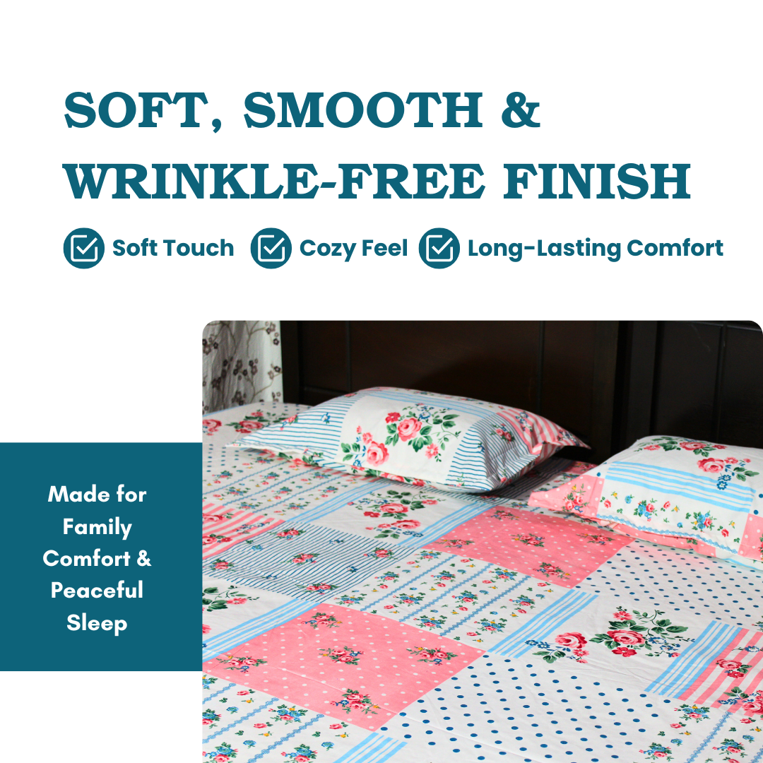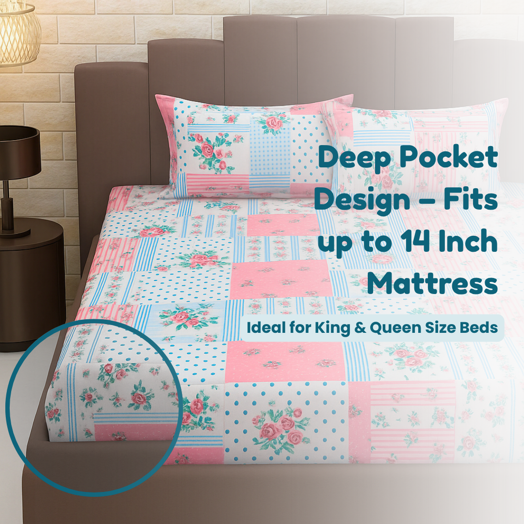 Infuse color and charm into your space with our Rose Patch Printed Fitted Sheet. Made from 100% cotton and designed with stretchable elastic edges for a perfect fit.
