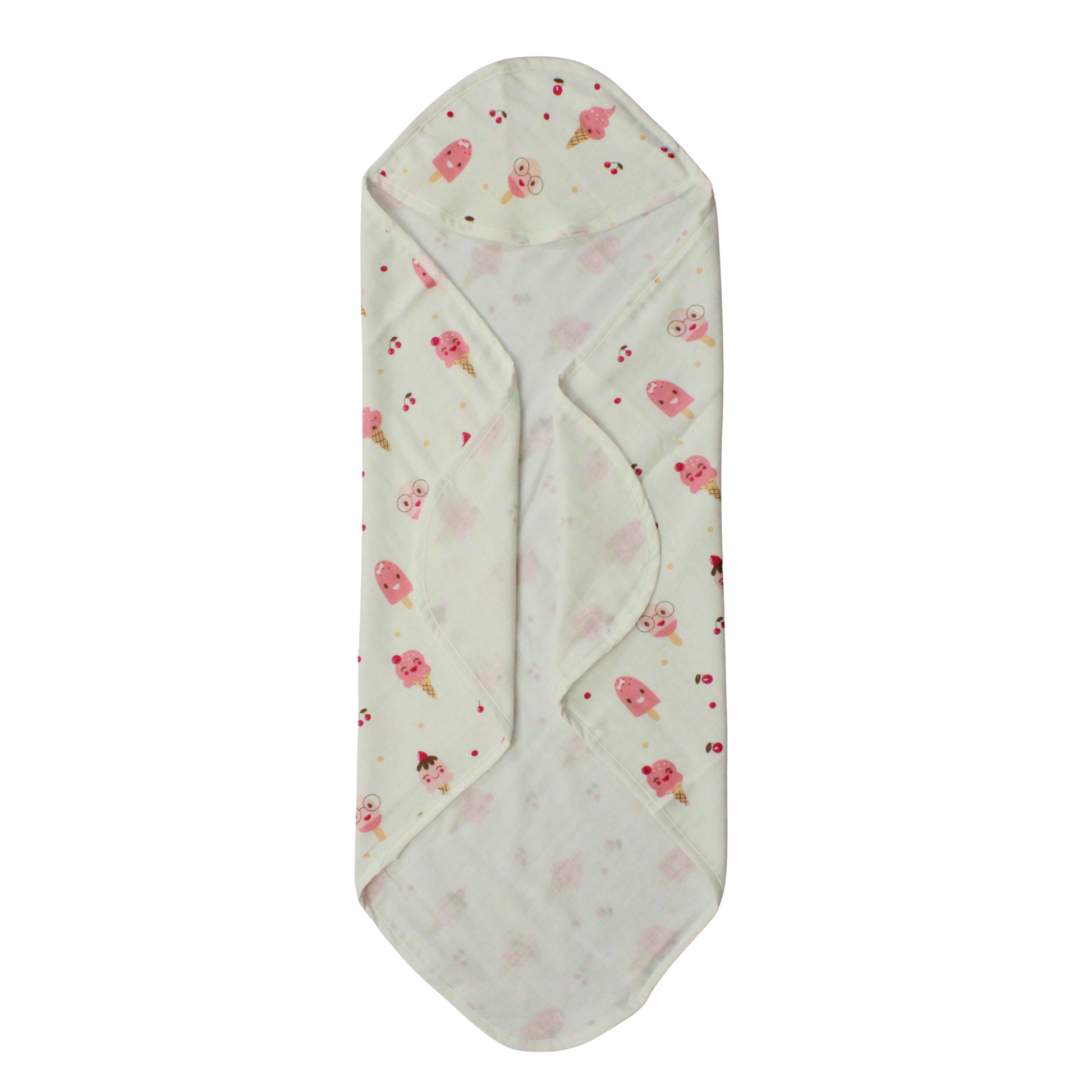 Muslin Hooded Blanket for Newborn Baby (ice cream print, 75 x 75 cm, pack of 1)